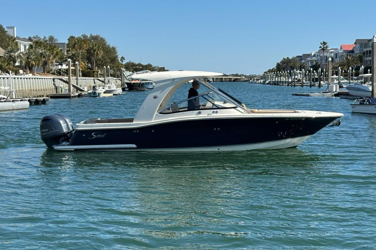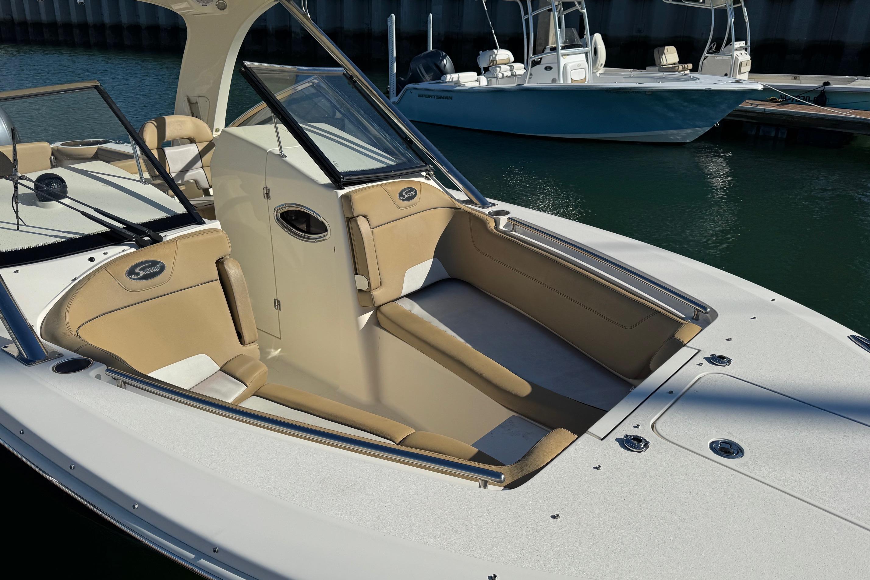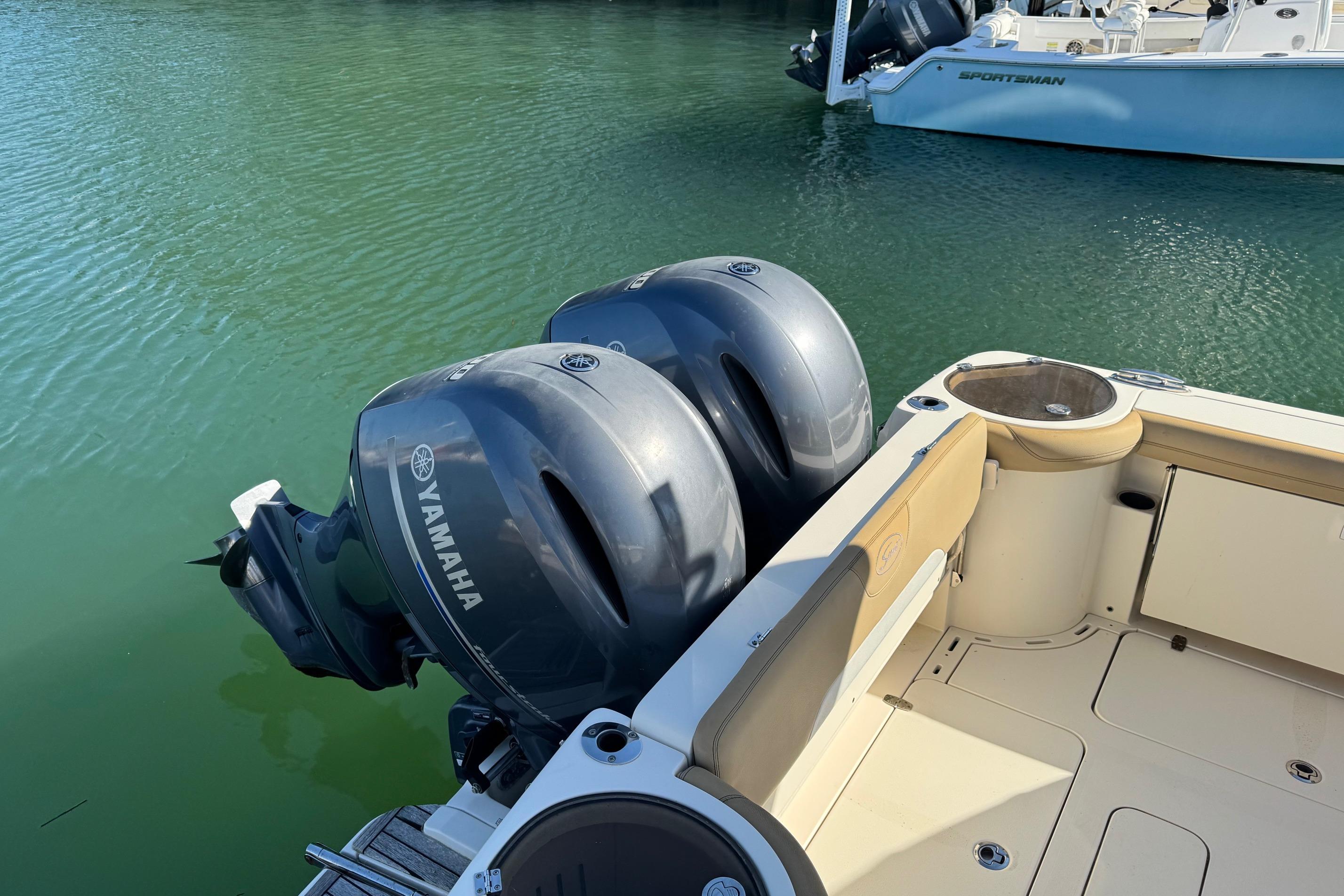 Her roomy cockpit with double helm seating, aft-facing lounge, and convertible transom seating makes her ideal for entertaining guests dockside or while underway. Below, the inviting cabin layout features a fully equipped galley, a private forward stateroom, convertible dinette, and a mid-cabin lounge that converts to an additional berth - allowing comfortable overnight accommodations for up to six.