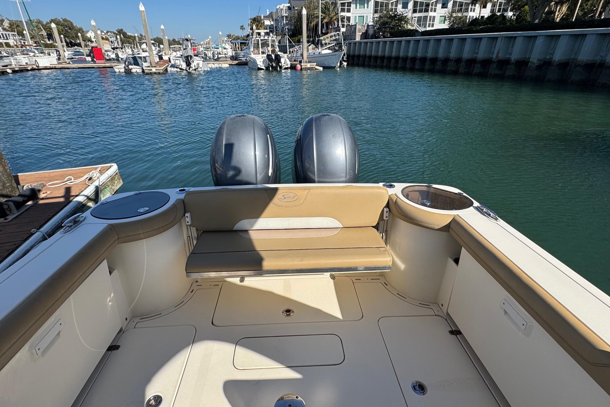 •Portside bench seat with fiberglass boarding step