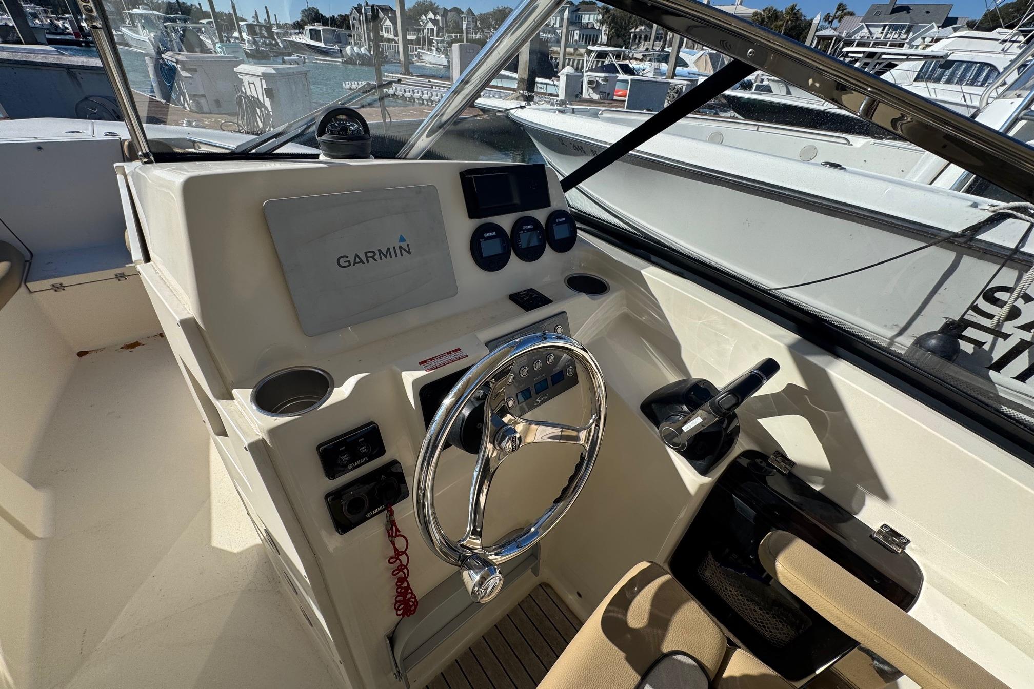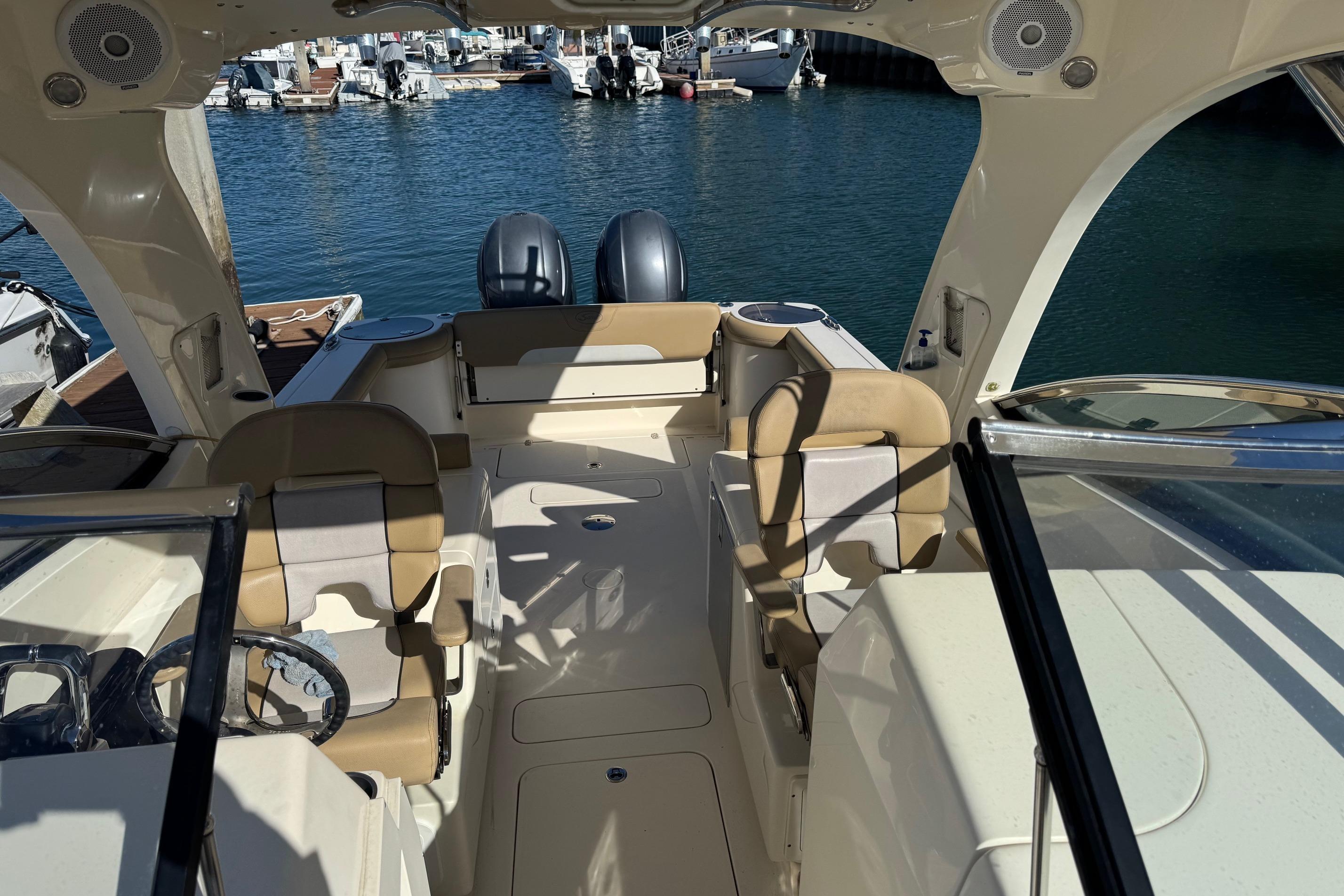 •Power adjustable helmseat with full aft-facing seat