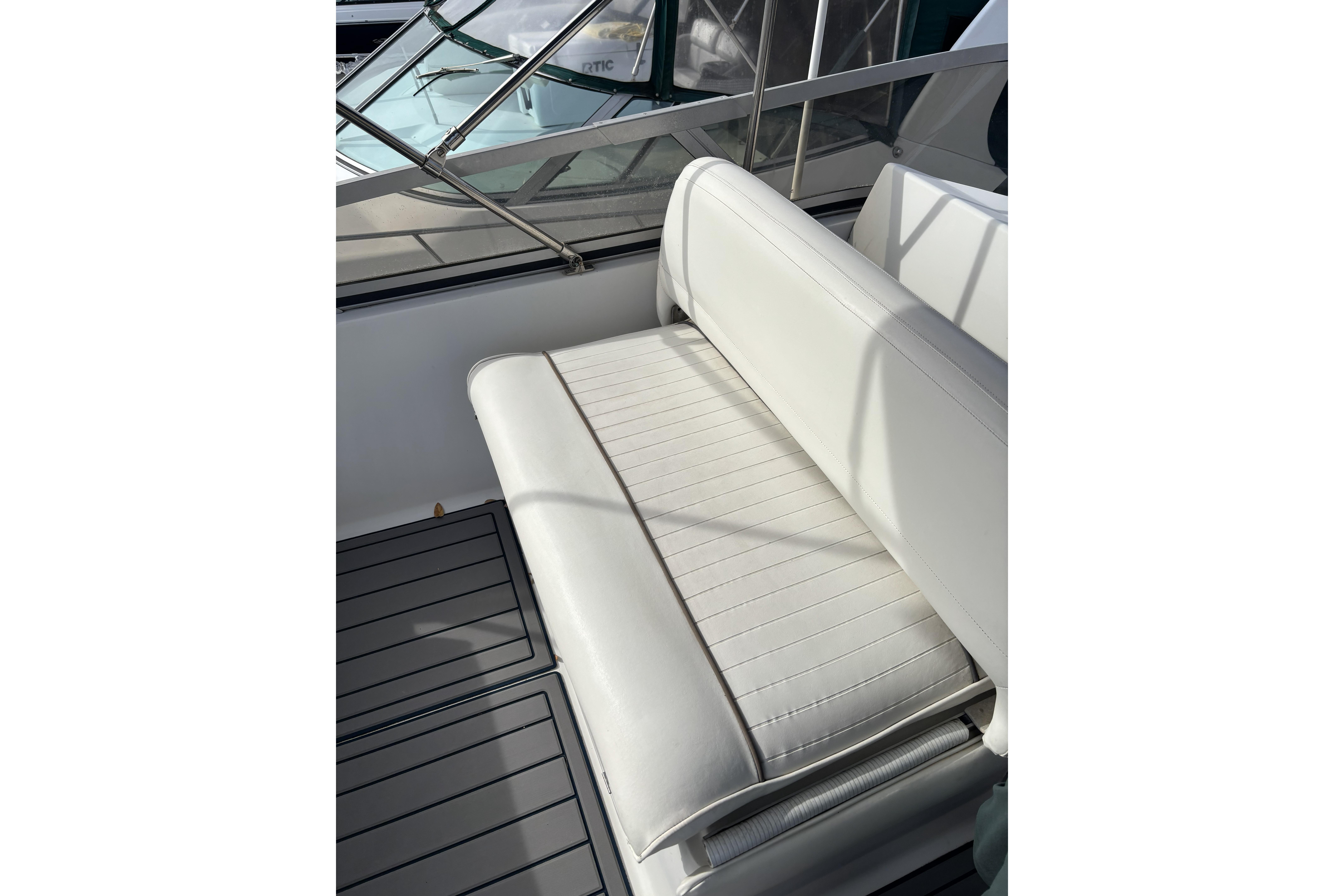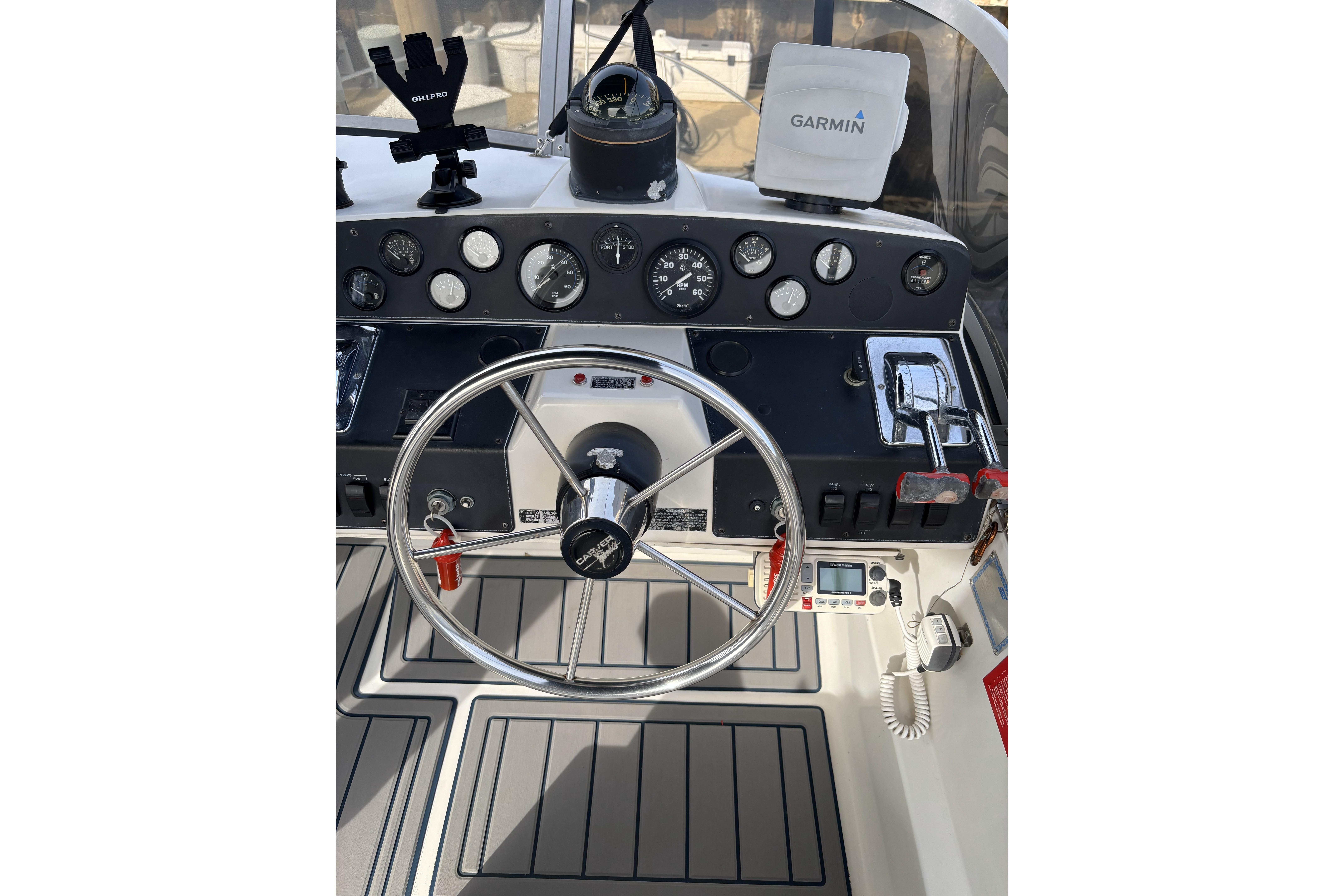 Limoncello is a 1996 Carver 320 Voyager. The 1996 Carver 320 Voyager blends spacious design, solid performance, and enduring craftsmanship in a 32-foot flybridge cruiser built for comfortable cruising and entertaining. Its modified-V hull delivers a stable, confident ride in a variety of conditions. The large flybridge features dual helm seats, companion seating, and excellent visibility, while the cockpit provides easy boarding and access to the swim platform. Below deck, the well-appointed cabin includes a full galley, convertible dinette, private forward stateroom, and enclosed head, offering overnight accommodations for up to six. Powered by twin Crusader inboards, the 320 Voyager delivers reliable performance, smooth handling, and Carver’s signature commitment to quality and livability. She is perfect for overnight cruising and day cruising. Call for a showing today.